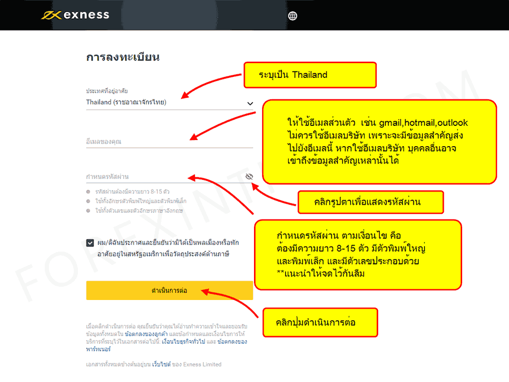 อันดับแรกให้ไปที่หน้าลงทะเบียน Exness
